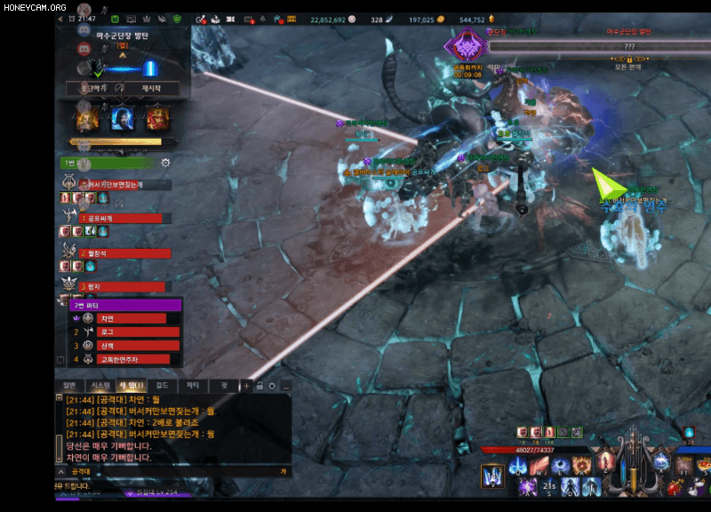 움짤 우측에 보시면 생성되는 구슬을 5초 가량 획득하지 않으면 광역 장판이 생깁니다.