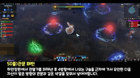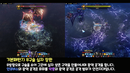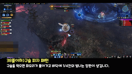 이때 장판 범위를 확인 후 안전지대를 브리핑 해서 내부 쪽 파티원들에게 생존위치를 알려주면 되겠습니다.