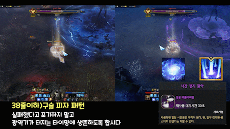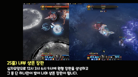 이때 내부에 있는 인원에게 빛나는 장판의 위치를 브리핑하여 전멸기를 회피하게 해줍니다.