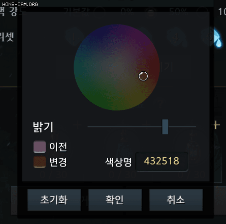 밝은 색의 경우에도, 색 휠을 정해놓고 밝기를 조정 할 때에 '조정할 때마다(클릭)' 색 휠에도 미세하게 변화가 있으므로,