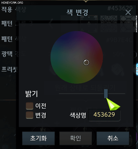 원하는색 (45xxxx)를 맞추기 위해 49나 47처럼 살짝 밝은 색으로 놓고, 색 휠을 클릭해서 45번대로 맞추면서 자동으로 나오는 색상명에 원하는 색상명이 나올때까지 최대한 맞춰가는게 RGB 색상코드 저격에 제가 발견한 최대 팁입니다.