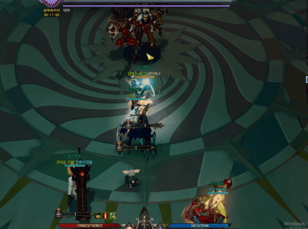 타이밍을 보고 힐과 심포니아를 사용해줍시다. 파티원 이펙트 표시를 꺼둔 파티원을 위해 핑찍어서 브리핑해주는것 잊지맙시다.