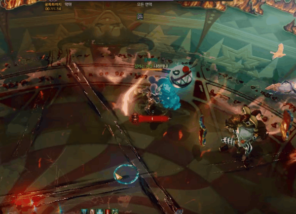 짝수번째 체력반전저주 이후 중앙으로 들어가 전파티원에게 침묵을 건 후 광역딜을 주는 광대얼굴 패턴을 사용합니다.