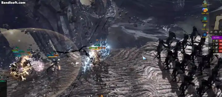 위쪽에서 나타는 무력은 몹 무리 중앙에서 나타납니다