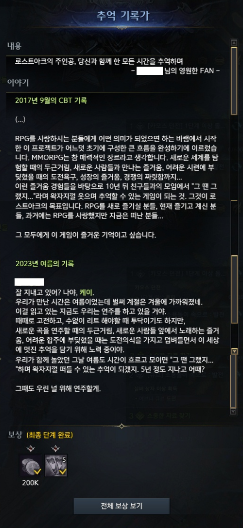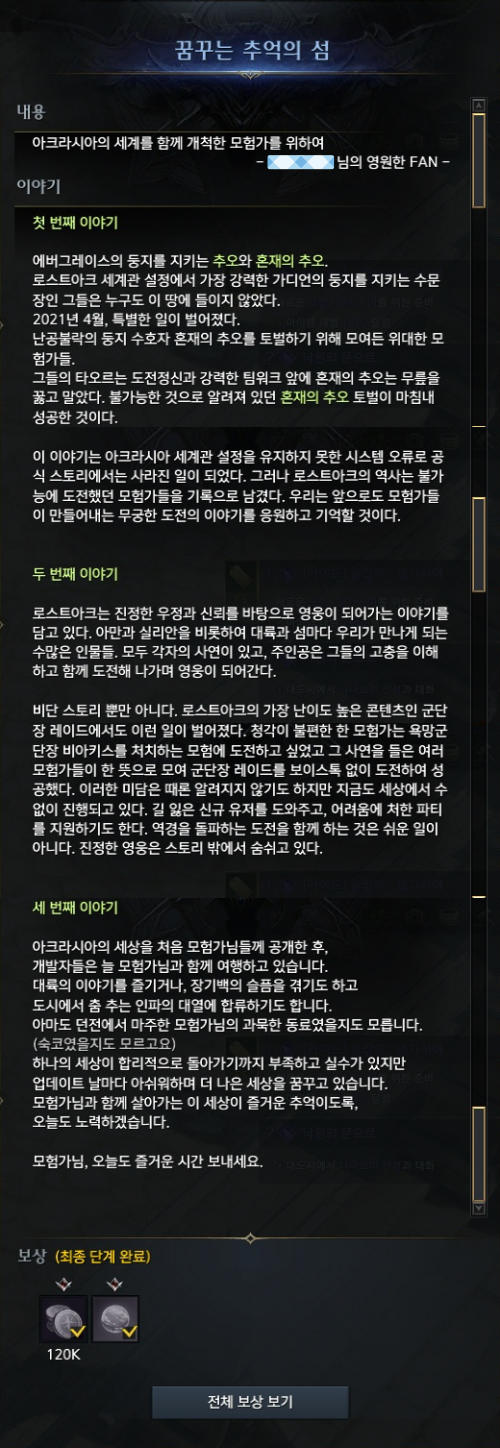85. 추억 기록가 길드 / 국가 / 도시 / 장소 빛나는 추억의 섬 (빛추섬) 인물 금강선 / 썸머 베케이션 케이 키워드 디렉터의 편지 / 추억 / 5주년 / 이벤트