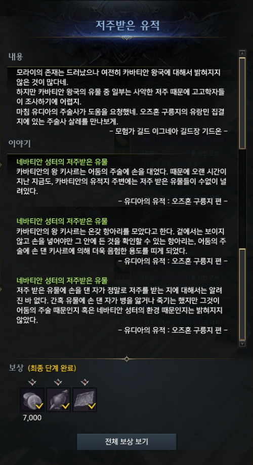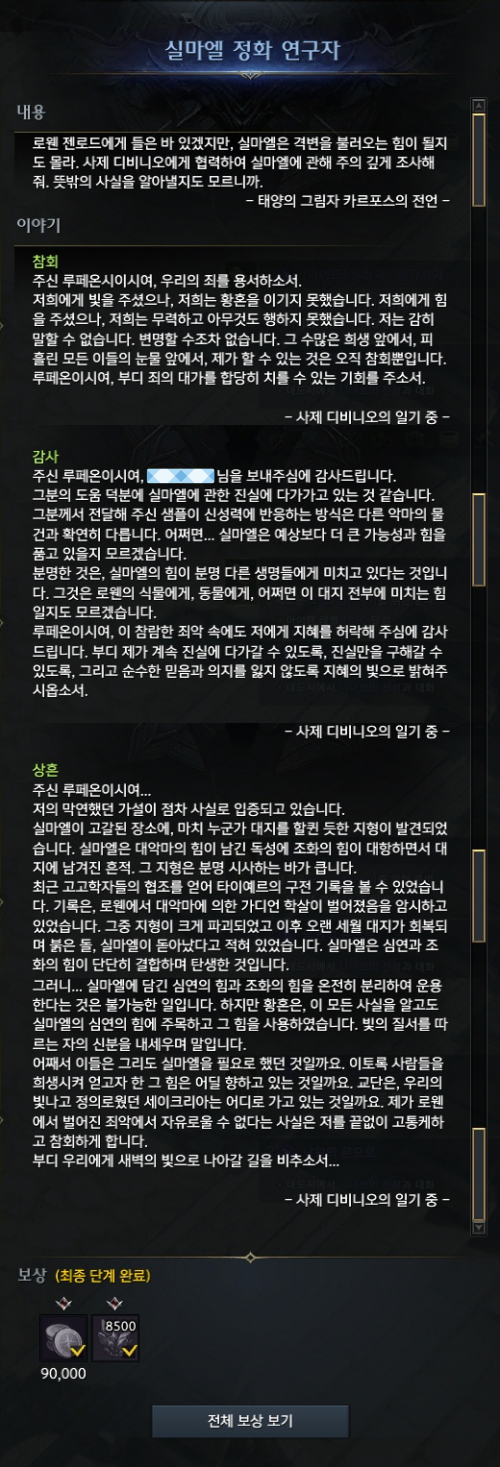 키워드 실마엘 / 루페온 / 새벽 / 황혼 / 타이예르 구전 기록 / 조화의 힘 / 심연의 힘 / 기에나 / 카제로스 / 대악마