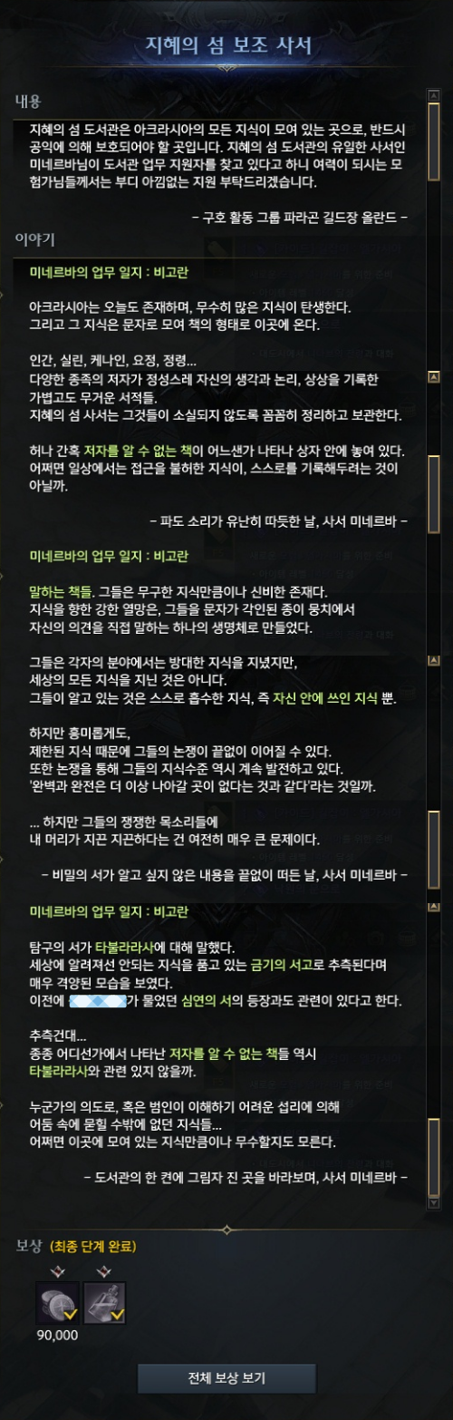 길드 / 국가 엘가시아 / 도시 아리안오브 / 장소 명예의 도서관