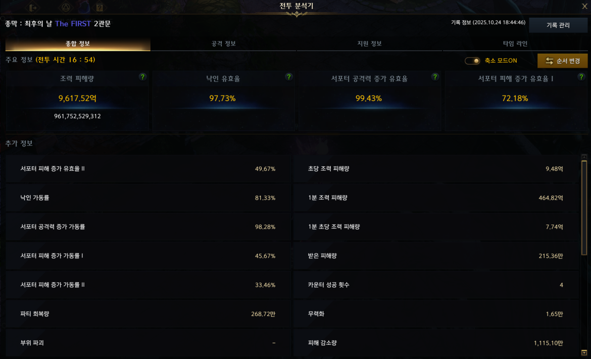 더 퍼스트 탑텐런 하면서도 느꼈던 부분인데 율법이 딜러 한명에게 빠지는 순간 케어가 너무 구려집니다,,,