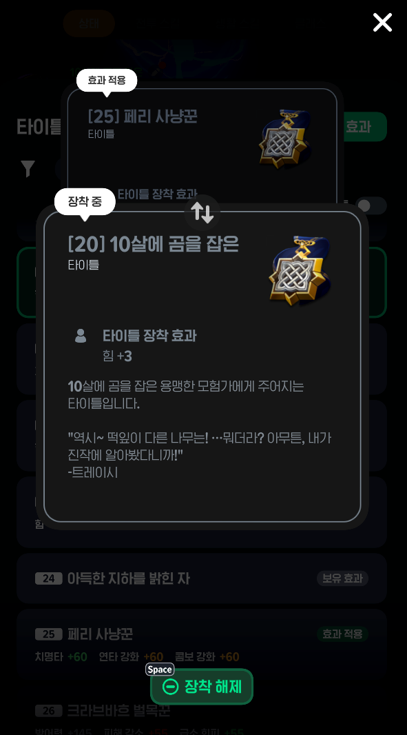 이제 마음에 드는 타이틀의 이름을 장착하면서도 다른 타이틀의 효과를 가져와 쓸 수 있습니다.