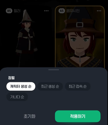 앞으로는 캐릭터 선택 화면에 정렬 기능과 항목이 추가될 예정입니다.