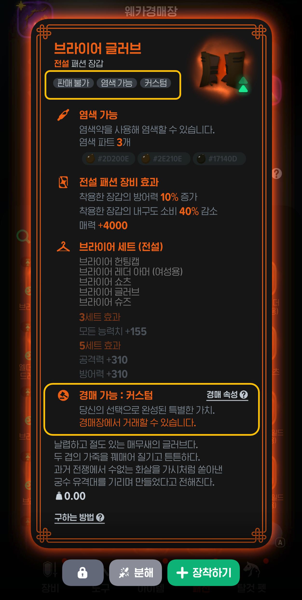 전설 희귀도의 커스텀 | 연금술-패션 장비 승급 | 최초 출시일과 상관없이 즉시 판매 가능 |