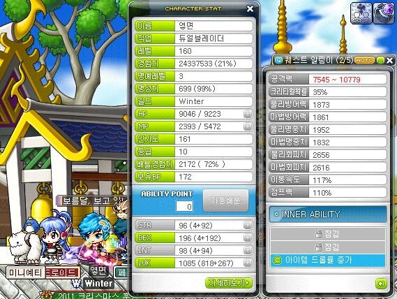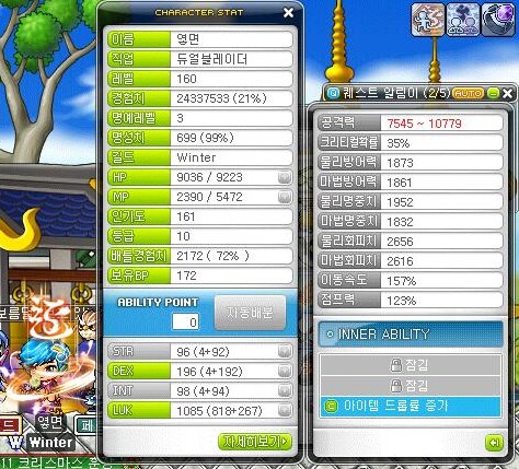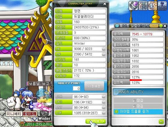 (스공 보시는 분들을위해 저레벨 무기장착. 템은 모두 팬텀에게)