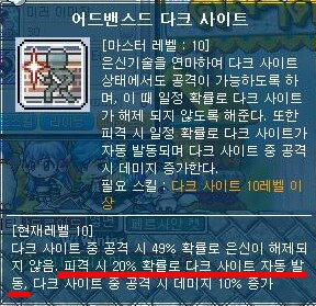 피격 시 20% 확률로 다크 사이트 자동 발동