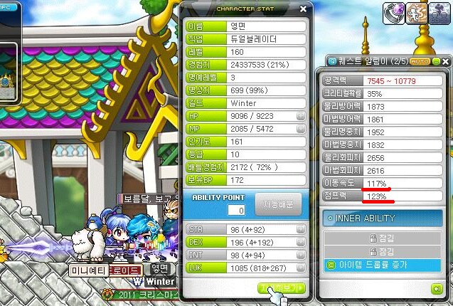 보시다시피 이동속도 117% 점프력 110%입니다.