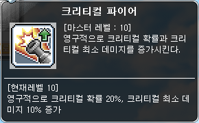 캐슈가 크리티컬이 좀 되는편인데 거기에 한몫하는 스킬. 반드시 마스터하자.