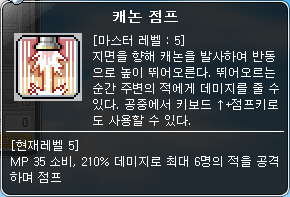 예전까지만 해도 캐논슈터 전용 스킬이었으나, RED 패치로 현재 모험가 해적은 다 보유하고 있다.