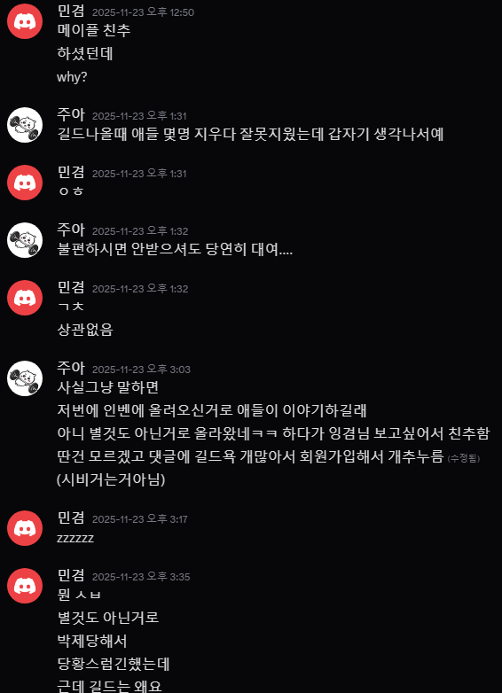 1. 타인과, 길드 비방에 대한 건 진심으로 반성하고 사과드리겠습니다.