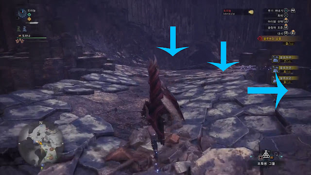 8~9개로 채집이 되도록 이곳에서 푸른 보석의 채집량을 조절해서 10개를 모두 채집하지 않도록 주의해주시고 모자라면 이후 채집위치에서 잠시 채집해서 8~9개를 만드시고 루트를 이동하시면 됩니다.