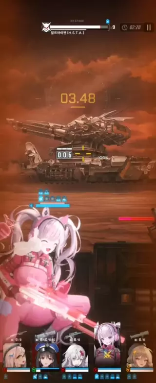 ■ 파티 구성은 어떻게? 2-EX의 보스는 약점이 '작열'이기 때문에 최대한 작열 속성의 니케를 사용하는 것이 좋다. 클리어 시 네온, 율하, 아니스, 디젤, 앨리스 스쿼드를 사용했는데, 아니스는 역상성이므로 다른 니케를 사용하는 것이 좋다. 또한 클리어에 저격소총 니케를 두 명 사용했는데, SR인 라피를 사용하면 더 좋다.