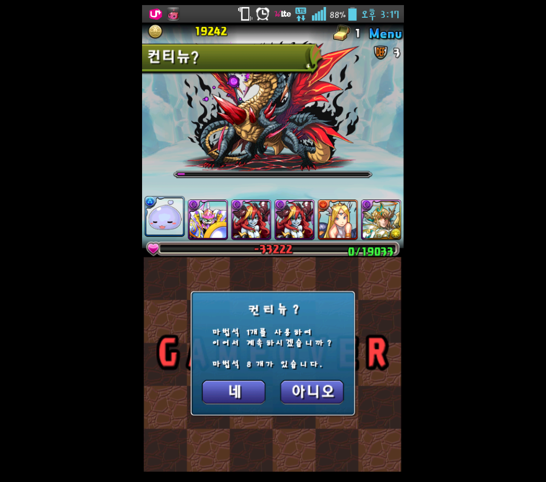 본인의 퍼즐 정도에 따라 어느정도의 컨티뉴를 각오해야 합니다. (암드롭잘 안나오면 법석지출 답안나옴..)