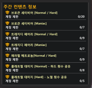 - 노멀 난이도 입장 횟수는 계정당 8회 / 하드 난이도 입장 횟수는 계정당 5회입니다.