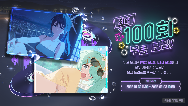 - 이벤트 기간 내 접속 시 무료 모집을 최대 100회 획득할 수 있습니다.