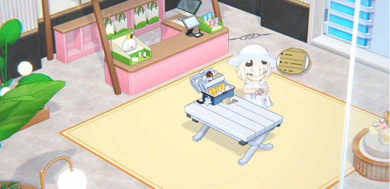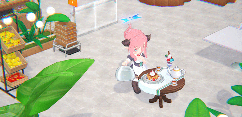 - ‘팬케이크 티 테이블’에서 주리(아르바이트)의 상호 작용을 확인할 수 있습니다.