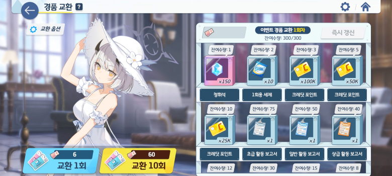 - 경품 교환 [9회차] 이후부터는 모든 아이템을 획득해야 ‘즉시 갱신’하여 경품을 초기화할 수 있습니다.