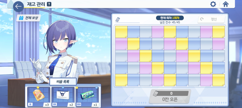 - 칸을 오픈하면 숨겨진 비품을 확인할 수 있으며, 비품의 모습이 완전히 드러나면 회차별 비품에 해당하는 보상을 획득할 수 있습니다.