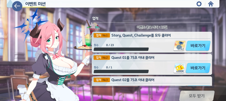 - 이벤트 스토리는 전투가 필요한 ‘스토리(Story)’, ‘퀘스트(Quest)’, ‘챌린지(Challenge)’와