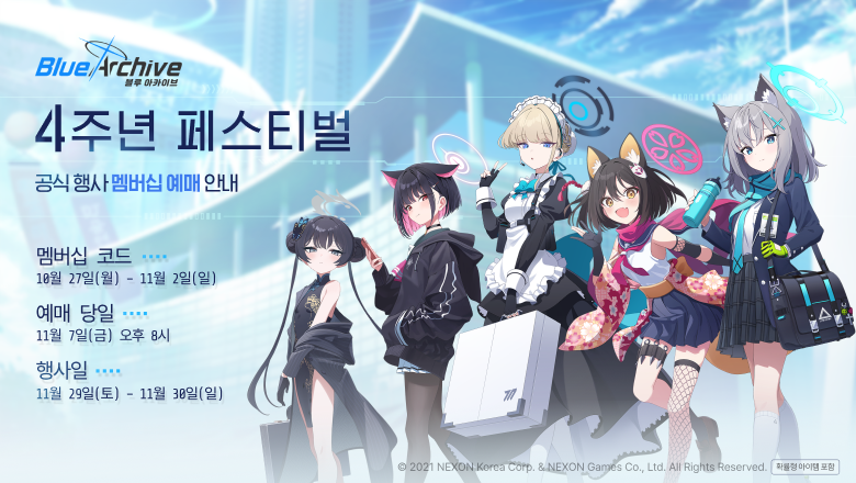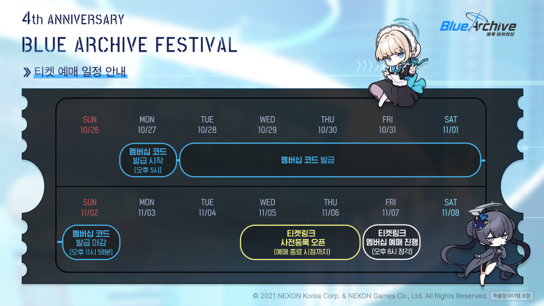 * 블루 아카이브 ‘4주년 페스티벌’ 티켓 판매는 11월 7일(금) 오후 8시부터 진행될 예정입니다.
