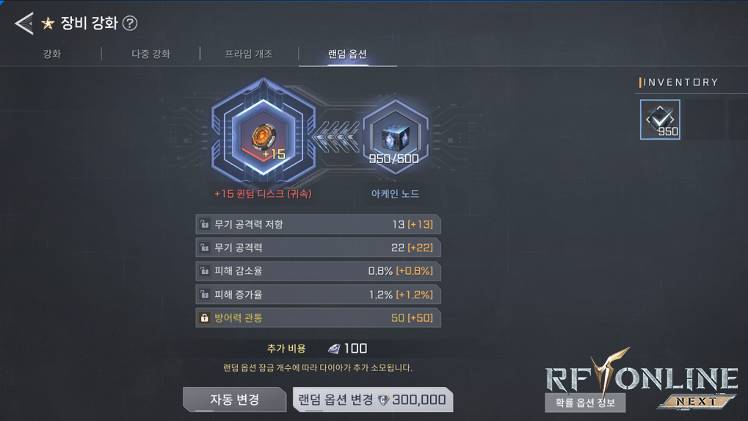 - 특정 강화 단계마다 랜덤 옵션을 부여할 수 있으며,