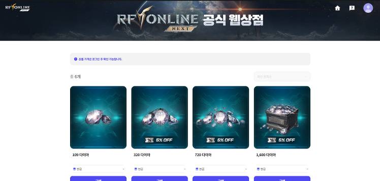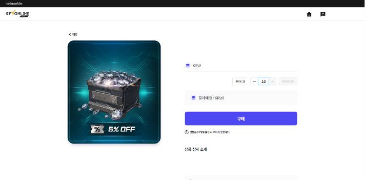 - PC 버전 내 게임 상점 또는 RF 온라인 공식 웹상점에서 동일 상품을 동시에 여러 개 일괄 구매가 가능합니다.