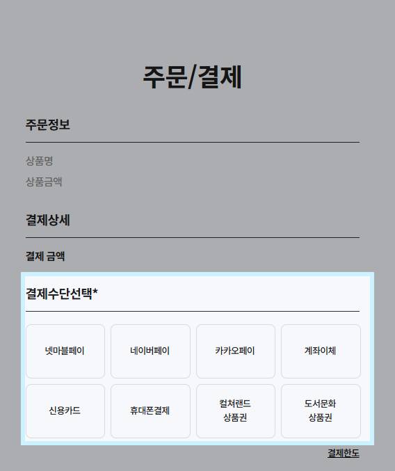 - 다중 수량 결제 시, 일부 결제 수단의 1회 결제 금액 한도 초과로 인해 결제 진행이 되지 않을 수 있습니다.