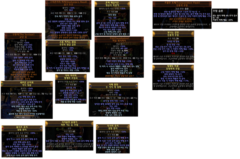 모두가 좋아하는 격분 충전 최대치나 마무리타격은 없습니다만, pob 실험상 dps상승에 매우 도움이 되어 만들어서 사용중이고 마무리타격이 체감 안 될 수준의 dps라서 굳이 추가구매하거나 만들지 않았습니다.