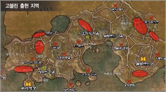 아래의 지도는 고블린들이 출현하는 장소로서. 초보자들이 꼭 가 보아야 할 곳이다..