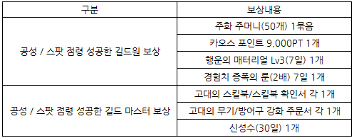 - 공성 / 스팟 점령에 성고안 길드원에게 보상을 드립니다.