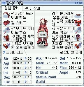 자꾸 160기준으로 하는 이유가 미케닉만의 장점이라 할수 있는데 제 스텟에서 보시다시피 인트 1인반면에 엠통이 2000이 넘었습니다. 물론 하렙과 스피셋의 도움도 있었지만 제가 보기엔 미케닉 자체가 160 넘기면서부터 피통,엠통이 타 직업군에 비해 많이 늘어나는거 같습니다.