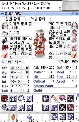1. 7덥매리카르가. 렙업용으론 최선입니다. 물약소모를 비약적으로 줄여줍니다. 잘만쓰면 물약 업이 사냥도 가능합니다.