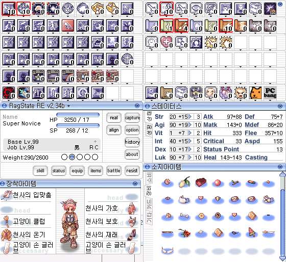 한돌 이전 기준으로 이 정도의 스킬이면 되겠습니다 ㄷㄷ.. 푸쉬카트에 들어간 10포인트를 빼면 대충 여유분이....