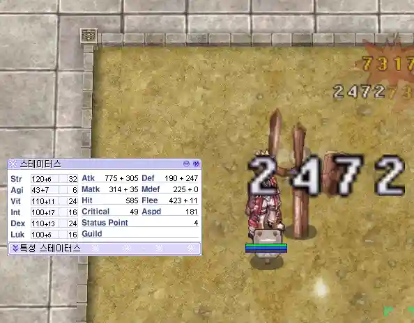 인트 힘 바이탈을 우선 100까지 찍고 어질90 -> 럭 100 -> 인트 120 순서로 스텟을 찍어나가시면 됩니다.