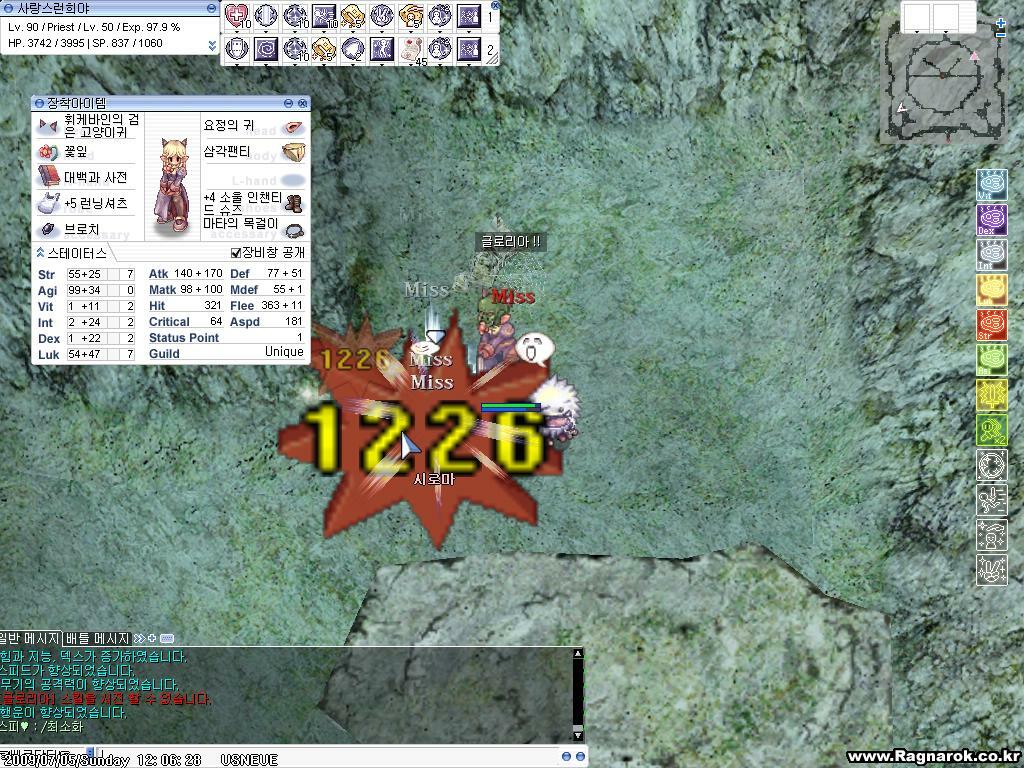 자신보다 높은 몬스터를 잡을시 크리안터지면 미스뜰확율이 높음;;(그래서 크리율이 중요;ㅅ;)