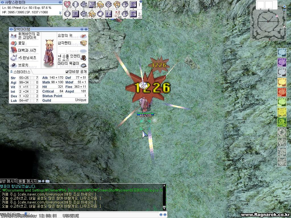 어질99 + 힘 + 럭 - <평타 가끔맞고 크리사냥...크리안터지면 미스뜰확율 높음>
