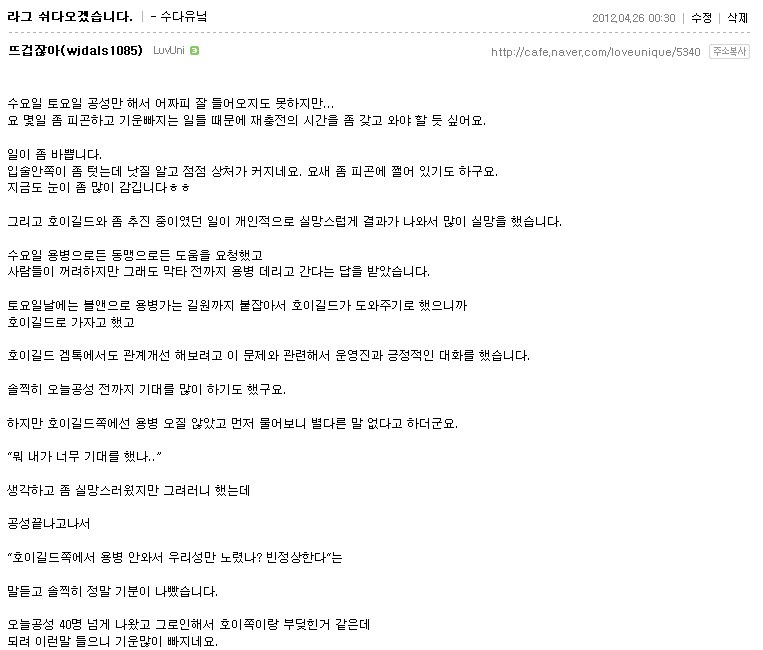 이렇게 이야기가 나온상태에서 유니크가 수요일 공성때 호이를 열심히 쫒아 다닌다.