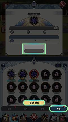 - 동일한 단계의 [성물]을 지정된 개수만큼 소진하여, 상위 단계의 [성물]로 일괄 합성할 수 있습니다.