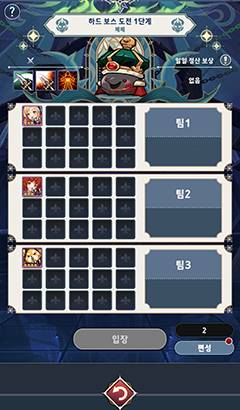 - 일반 스테이지에서의 [영향력]이 [하드 보스 도전]에서도 적용되며 요리, 물약 아이템은 사용할 수 없습니다.