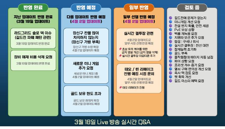 4월 2일 업데이트를 통해 게임 내에 즉시 반영하겠습니다.
