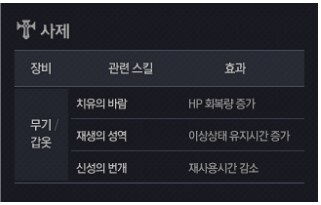 구원 문장 - 시전자 및 파티원에게 6초간 2초마다 Hp 5% 회복 효과 발생