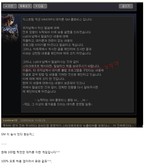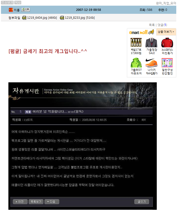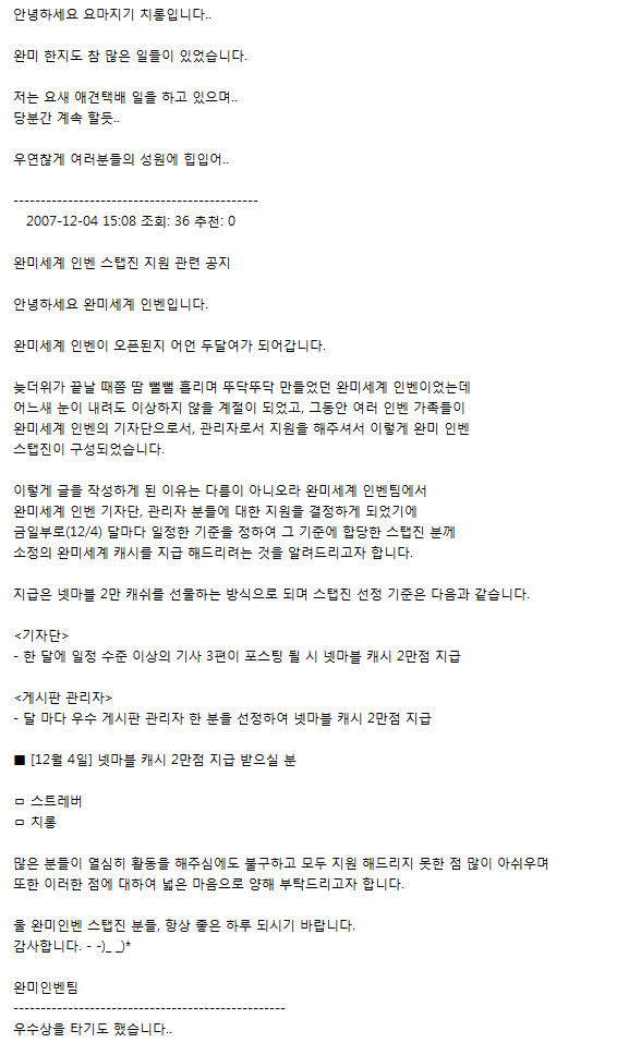 완미인벤 요마게시판 관리자였을때