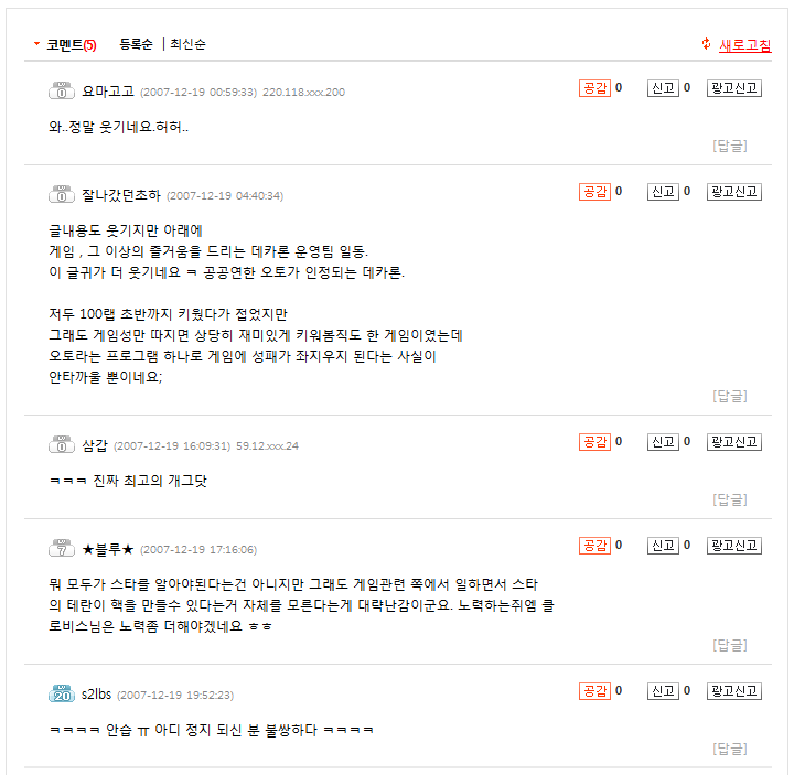 인벤 참 신기.... 2007년도 글이...남아있다니...